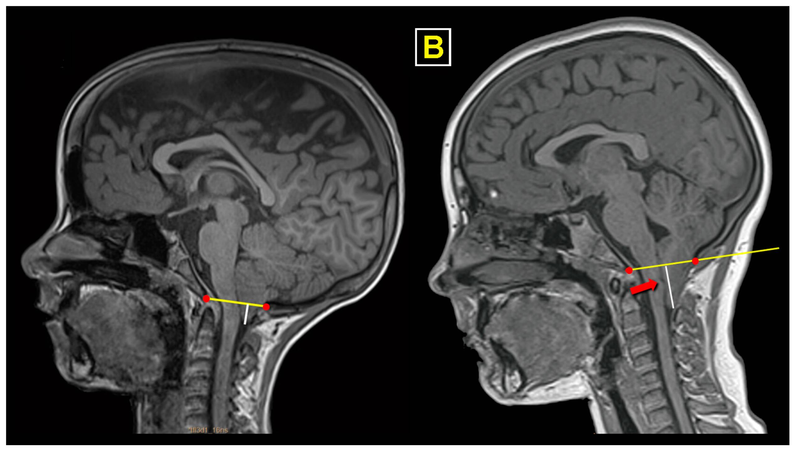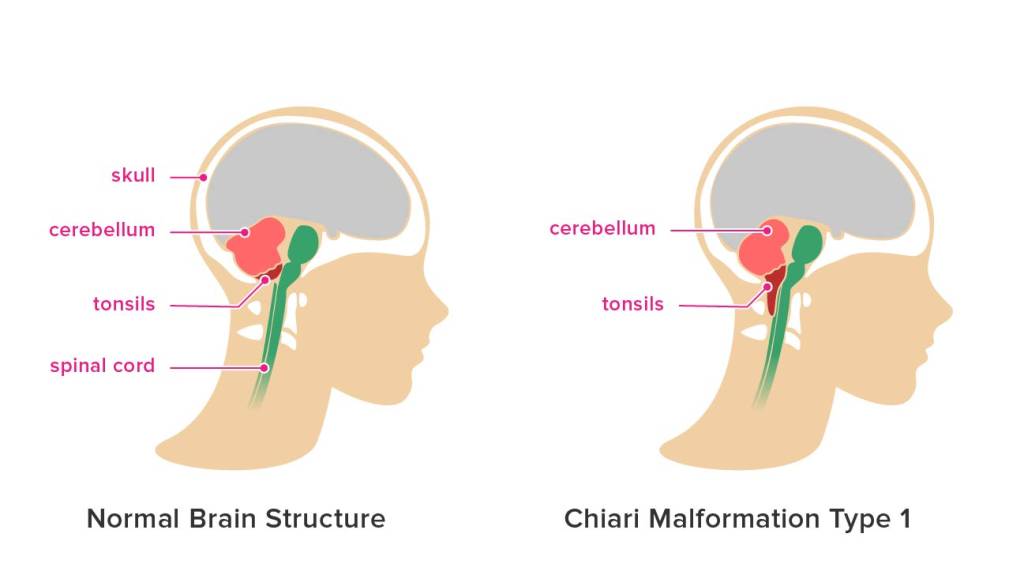 Arnold–Chiari malformation results from an anatomical mismatch between the skull and the brain, causing the cerebellum to extend beyond its normal boundaries. The most common form is Chiari Type I, which may become symptomatic during childhood or adulthood.